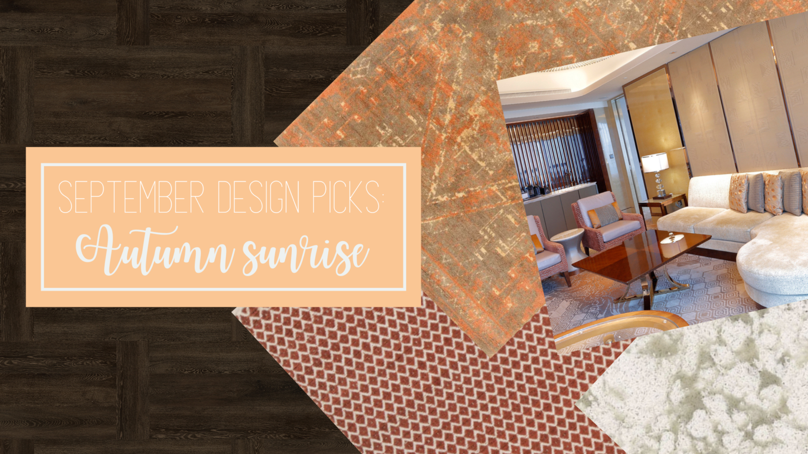 The base of our fresh fall design is our stunning & easy-to-install QuietLok® Profiles flooring in Elias Brun. It offers a modern twist on traditional parquet flooring in a deep chocolate brown. Next, we add some color with two of our Running Line Rugs! Each rug is from our Autumn Leaves color collection. Hand-tufted ORG-42407 adds a distressed look with colors that will remind you of a bright orange sunrise that lights up the sky. For multiple dimensions and patterns, add ORG-39101; a hand-woven creation with a diamond design in rust and cream. For even more dimension with a subtle and crisp look, add Ultracera® countertops to your space in Orchila Lava. It provides a marbled appearance in a taupe and off-white color scheme and it’s a part of our Select Pricing Series. Best of all, Ultracera® stone is an eco-friendly surface with lasting durability and low maintenance. Bring that autumn sunrise indoors and allow a new season to awaken a new feeling within yourself and your space!
